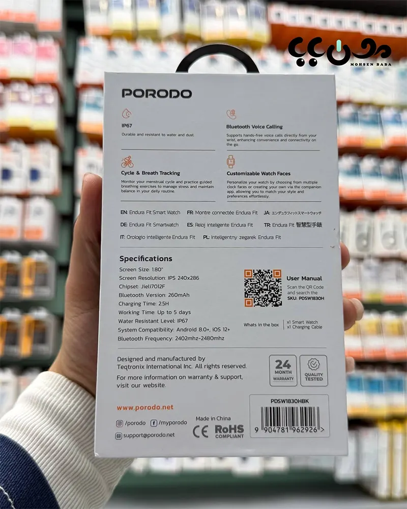 • بسته‌بندی چاپ با کیفیت و اطلاعات کامل برند Porodo