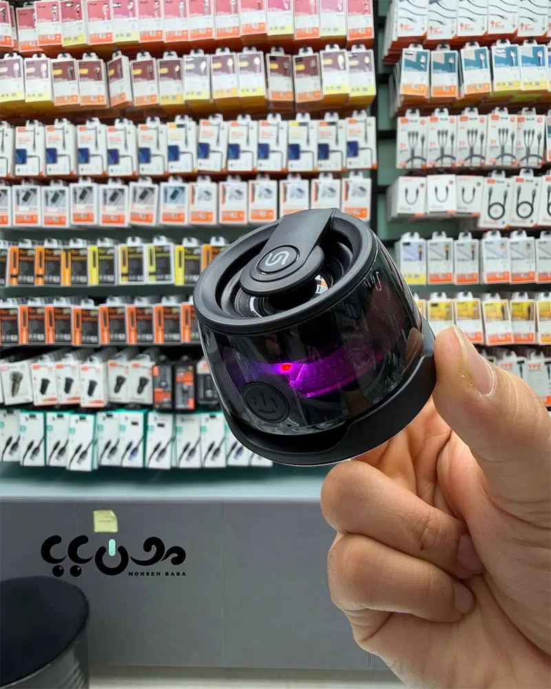 پایه مگنتی امکان نصب اسپیکر روی سطوح فلزی را فراهم می‌کند و استفاده رومیزی و ثابت را راحت‌تر می‌سازد.